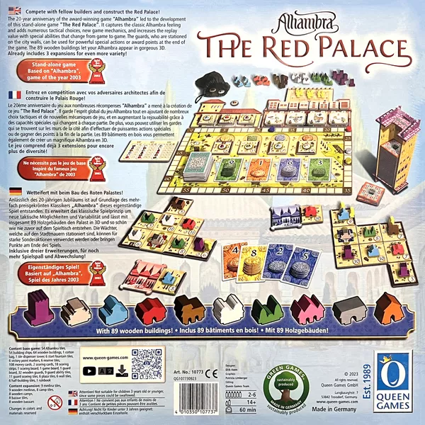 Alhambra: The Red Palace (EN) Preço sob consulta Desconto de %. Partilhar Compre este produto e ganhe Moves! Saber mais O produto estará disponível para compra brevemente. Características Número de jogadores 2 a 5 (melhor a 3) Idade recomendada A partir dos 8 anos Duração média 45-60 minutos Sleeves Nº Cartas : 110 Medida : 58x89 Marca Queen Games Tags Familiar2-5 Características