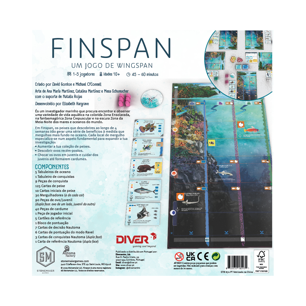 Descobre Finspan, um jogo de tabuleiro estratégico e acessível onde vais construir e gerir ecossistemas subaquáticos através de cartas e combinações inteligentes. Com uma produção visual apelativa, regras simples e enorme fluidez, Finspan é perfeito para famílias, jogadores casuais e fãs de jogos de construção equilibrada com decisões rápidas e significativas.