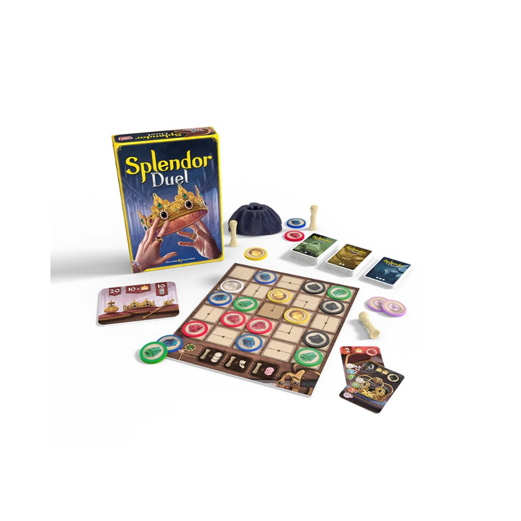 Em Splendor Duel, os jogadores competem para adquirir cartas de desenvolvimento, recolher gemas e conquistar privilégios que lhes dão acesso a combos poderosos. A principal novidade é o tabuleiro de gemas, onde as escolhas são muito mais táticas e onde cada jogada pode abrir (ou bloquear!) oportunidades ao adversário.